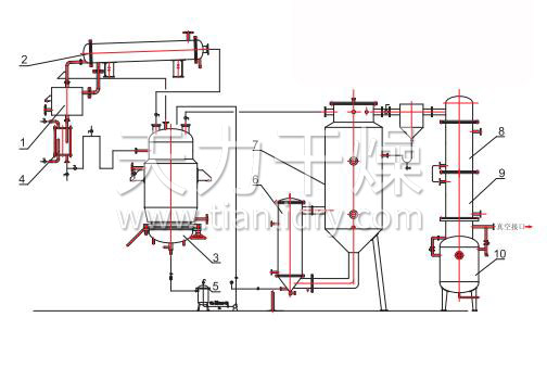 1-冷卻器 2-冷凝器 3-提取器 4-油水分離器 5-過濾器 6-加熱器 7-蒸發(fā)器 8-冷凝器 9-冷卻器 10-收集罐